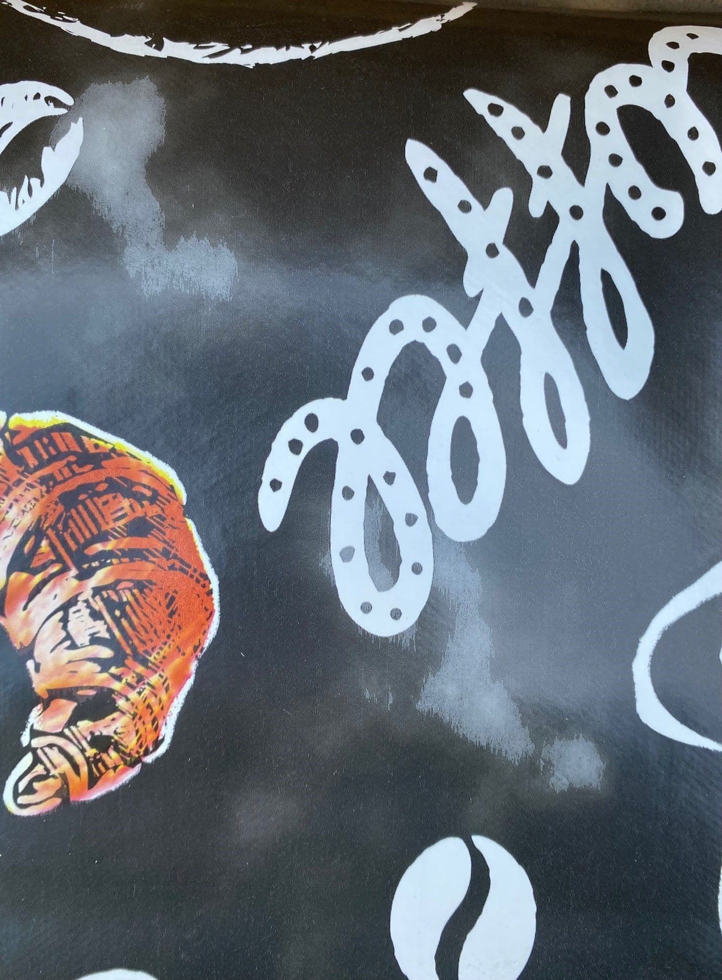 Black background with white lettering and breakfast pastries